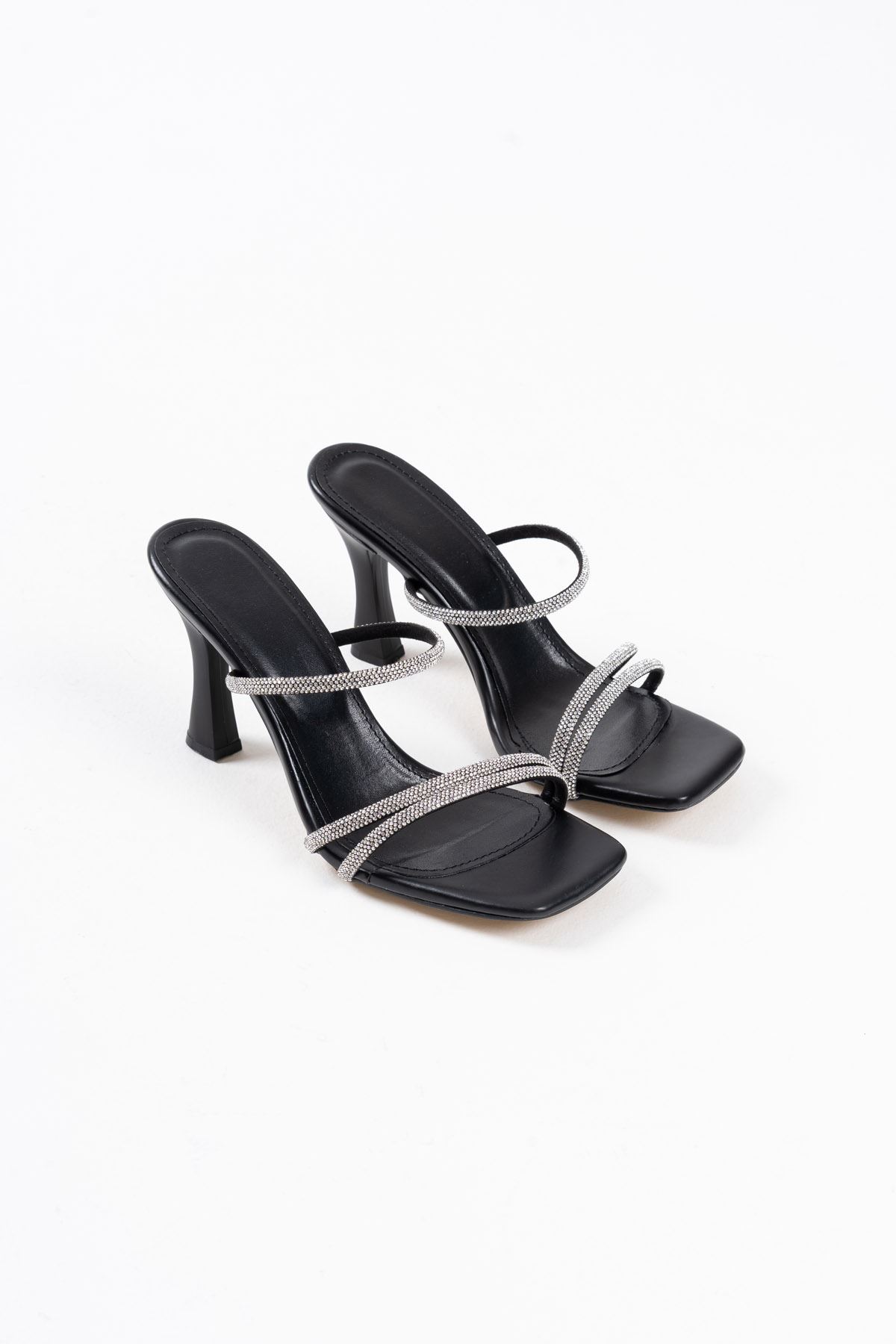 Alvina Siyah Taşlı İnce Bantlı Kadın Topuklu Terlik