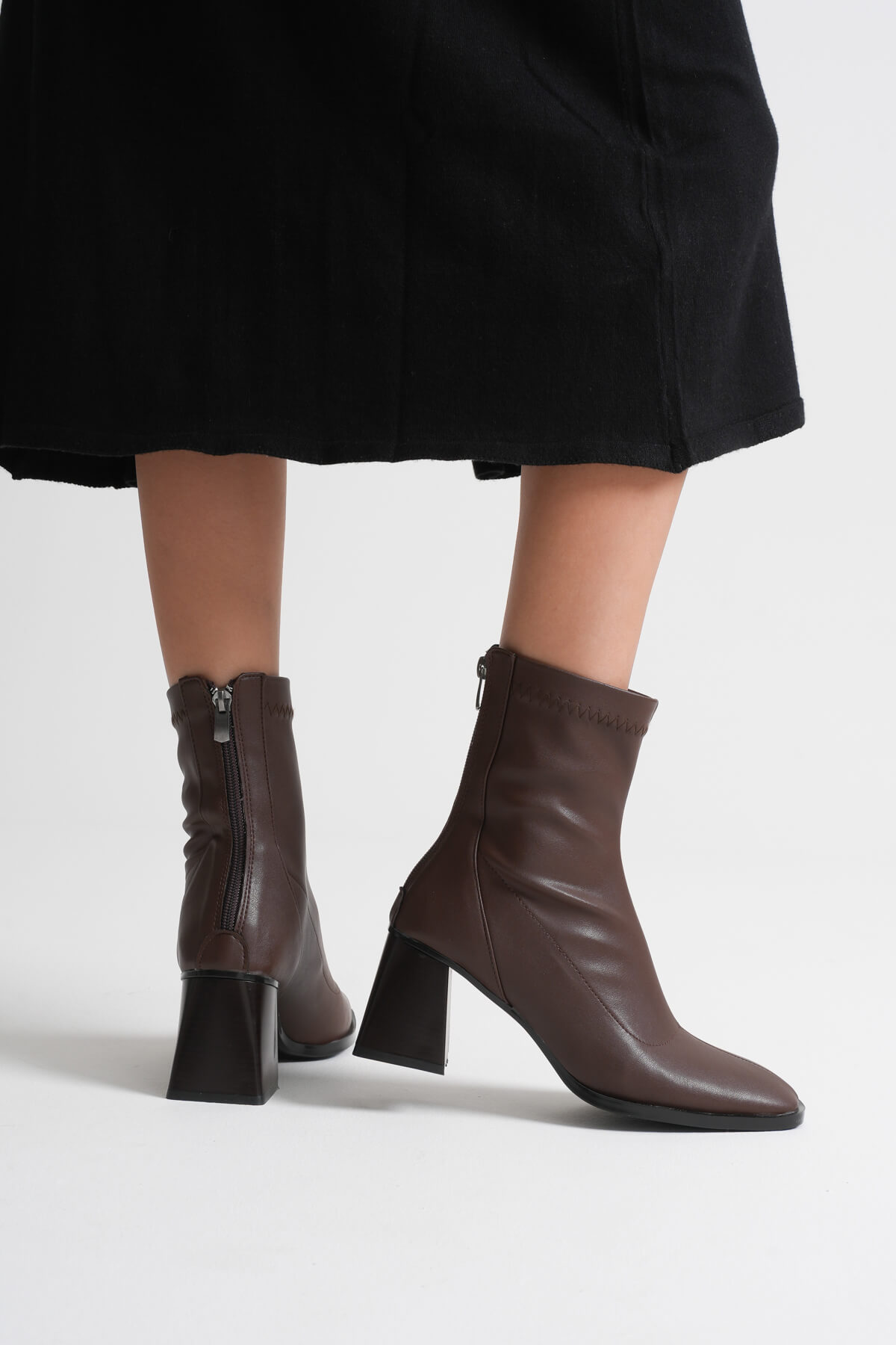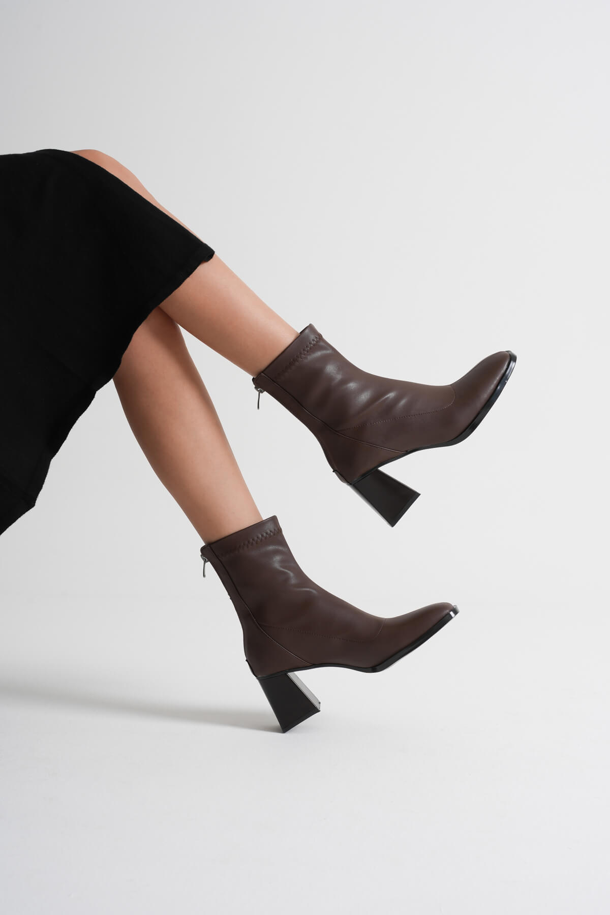 Arvena Acı Kahve Kalın Topuklu Streç Bot