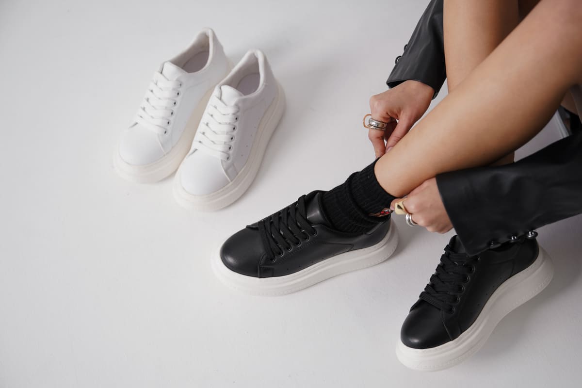 Bella Siyah Beyaz Kadın Spor Ayakkabı
