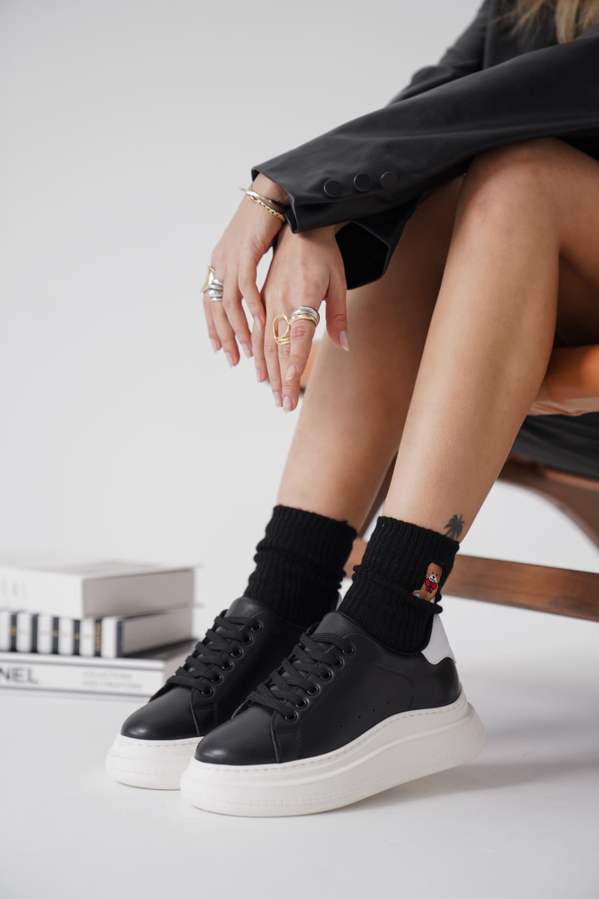 Samira Beyaz Detaylı Siyah Spor Ayakkabı