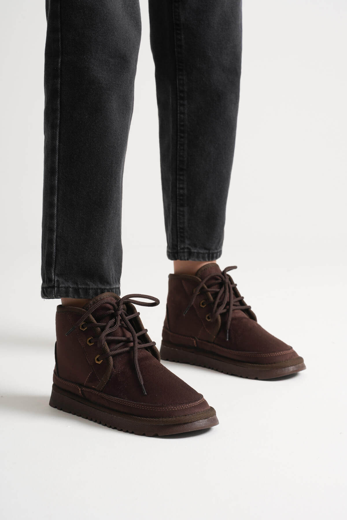 Karma Özel Tasarım Kışlık Acı Kahve Kalın Tabanlı Kadın Bot