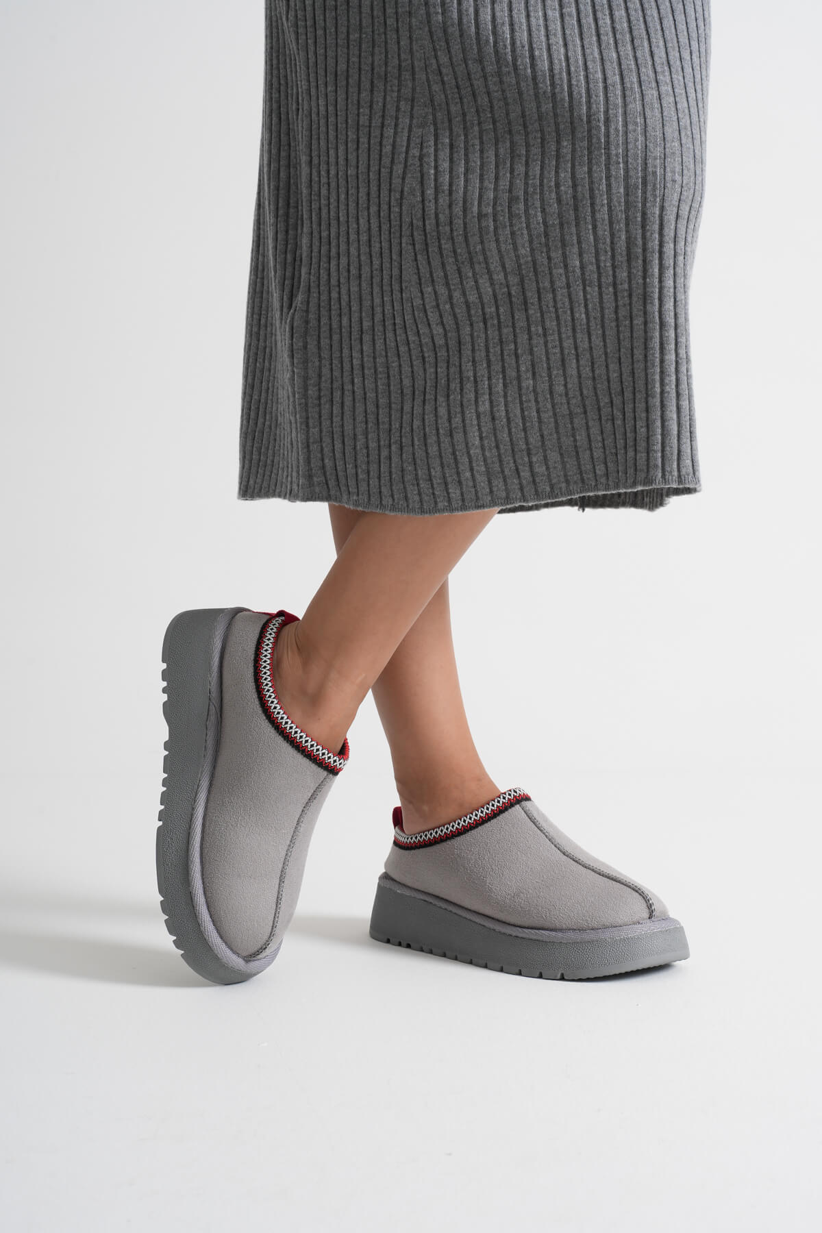 Elsa Kadın Gri Kışlık Kürklü Terlik