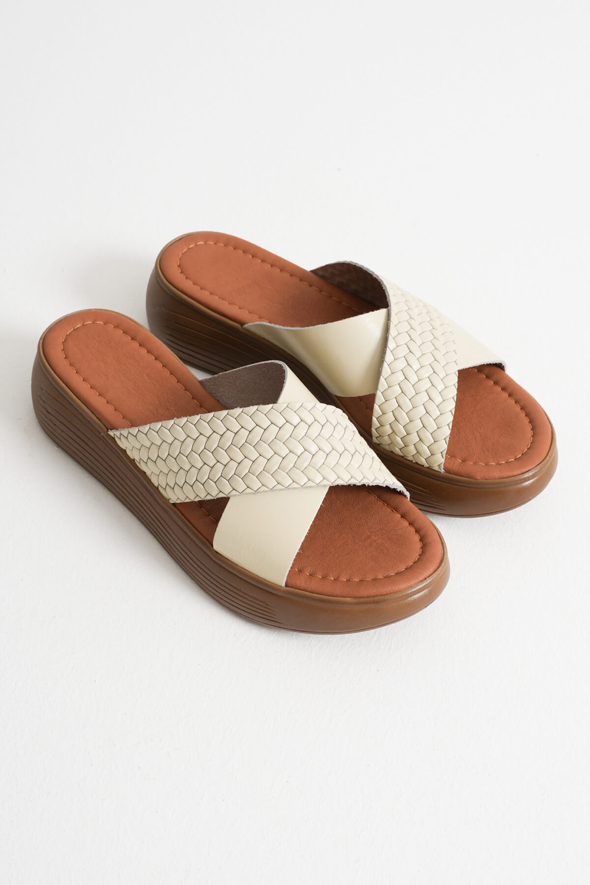 Fayn Acı Kahve Örgü Desenli Hakiki Deri Terlik