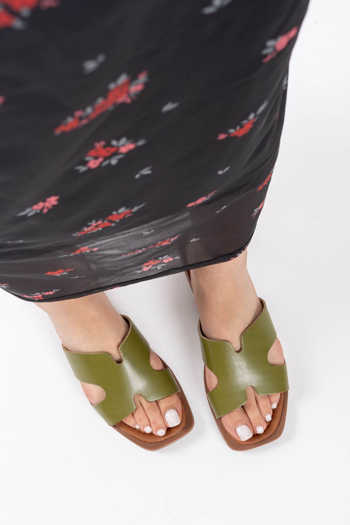 Nelly Haki Yeşili Hakiki Deri Terlik