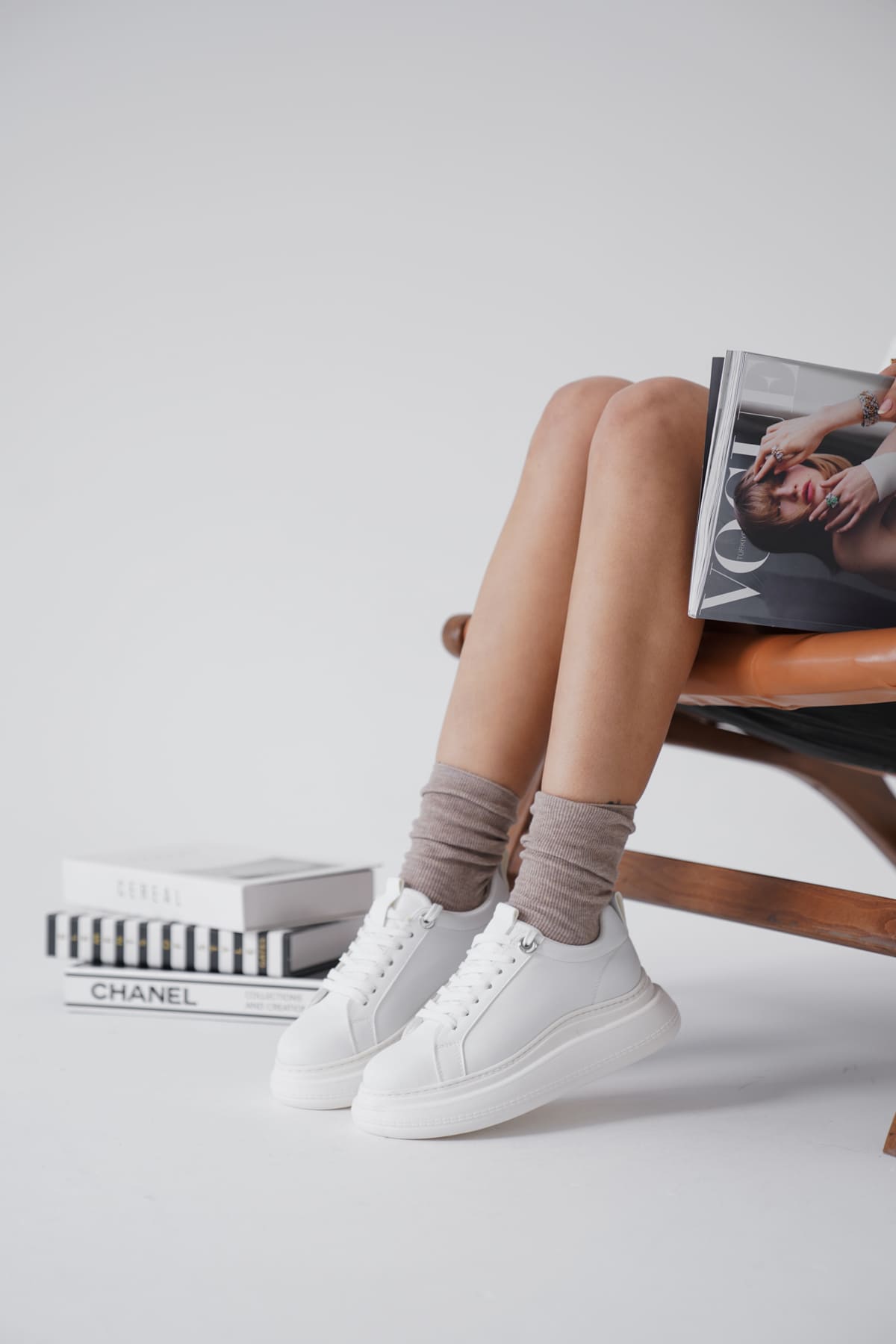 Vega Gümüş Detaylı Beyaz Kadın Spor Ayakkabı