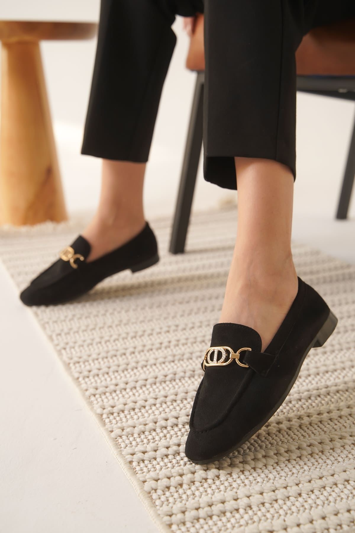 Noir Kadın Günlük Siyah Süet Loafer Ayakkabı