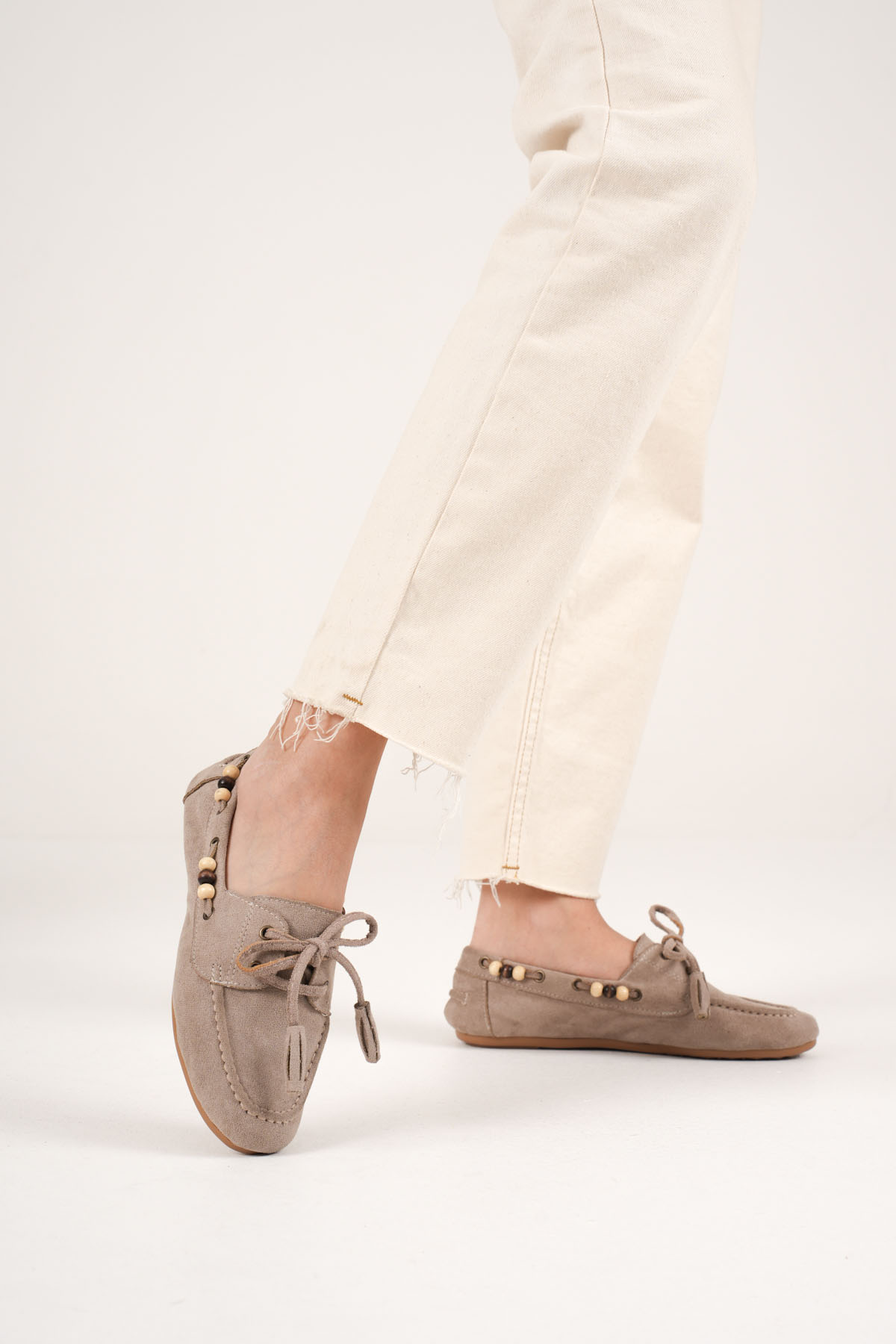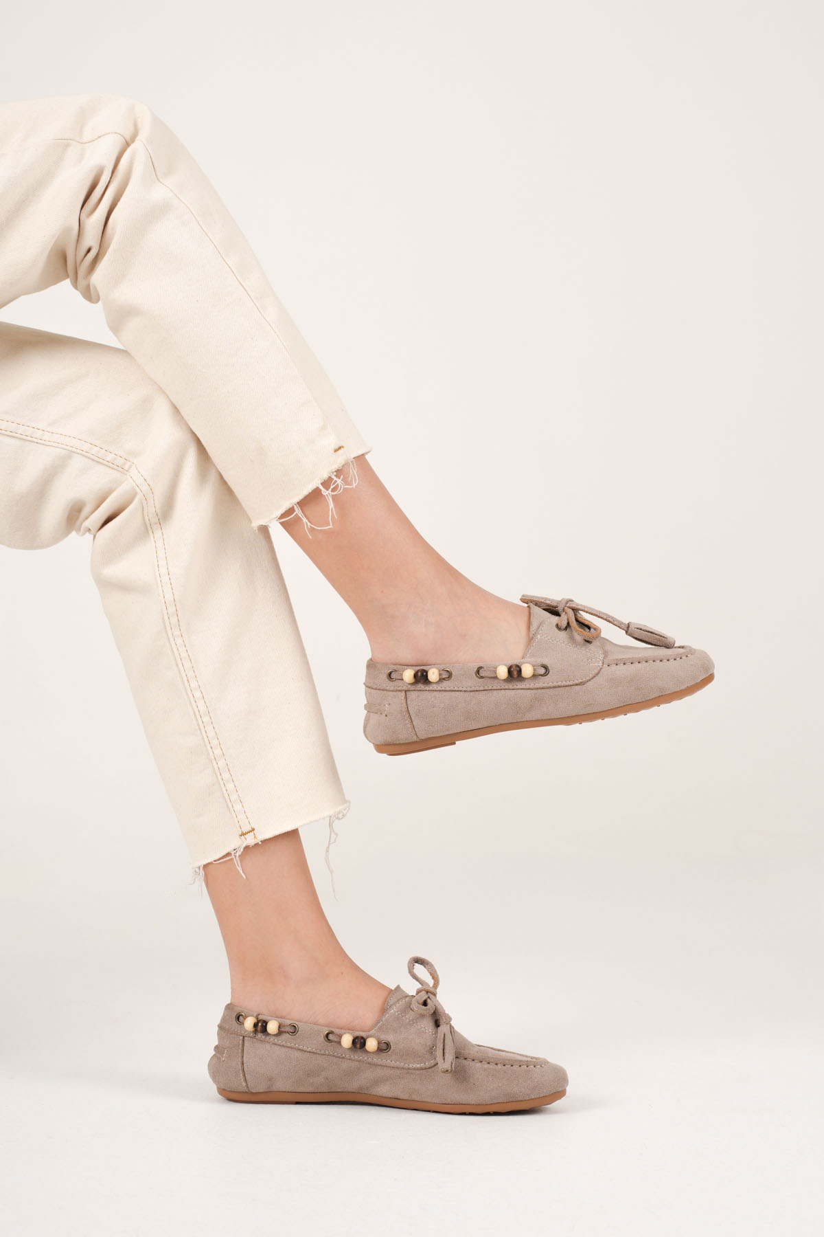 Kadın Vizon Boncuklu Günlük Süet Ayakkabı TR27MS07D