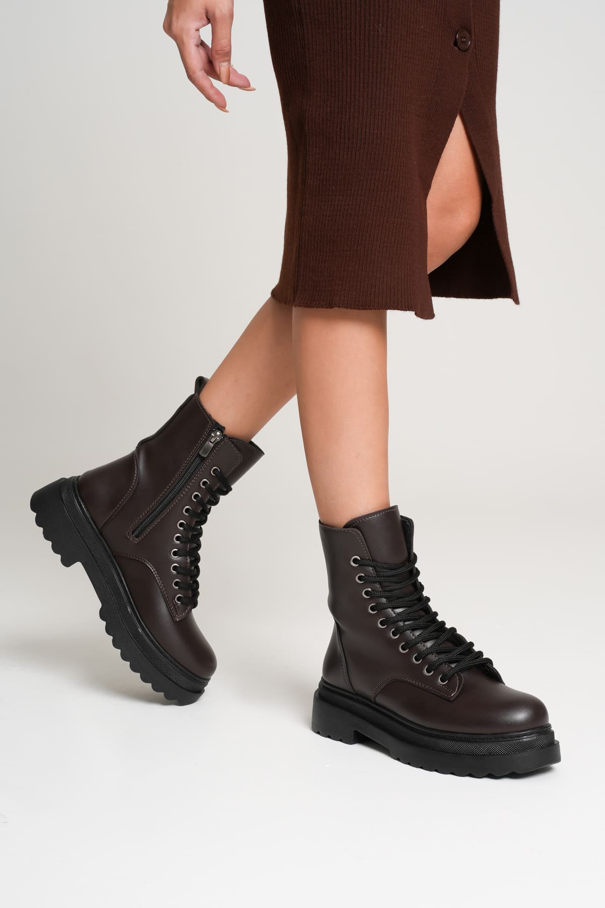 Karma Özel Tasarım Kışlık Acı Kahve Kalın Tabanlı Kadın Bot