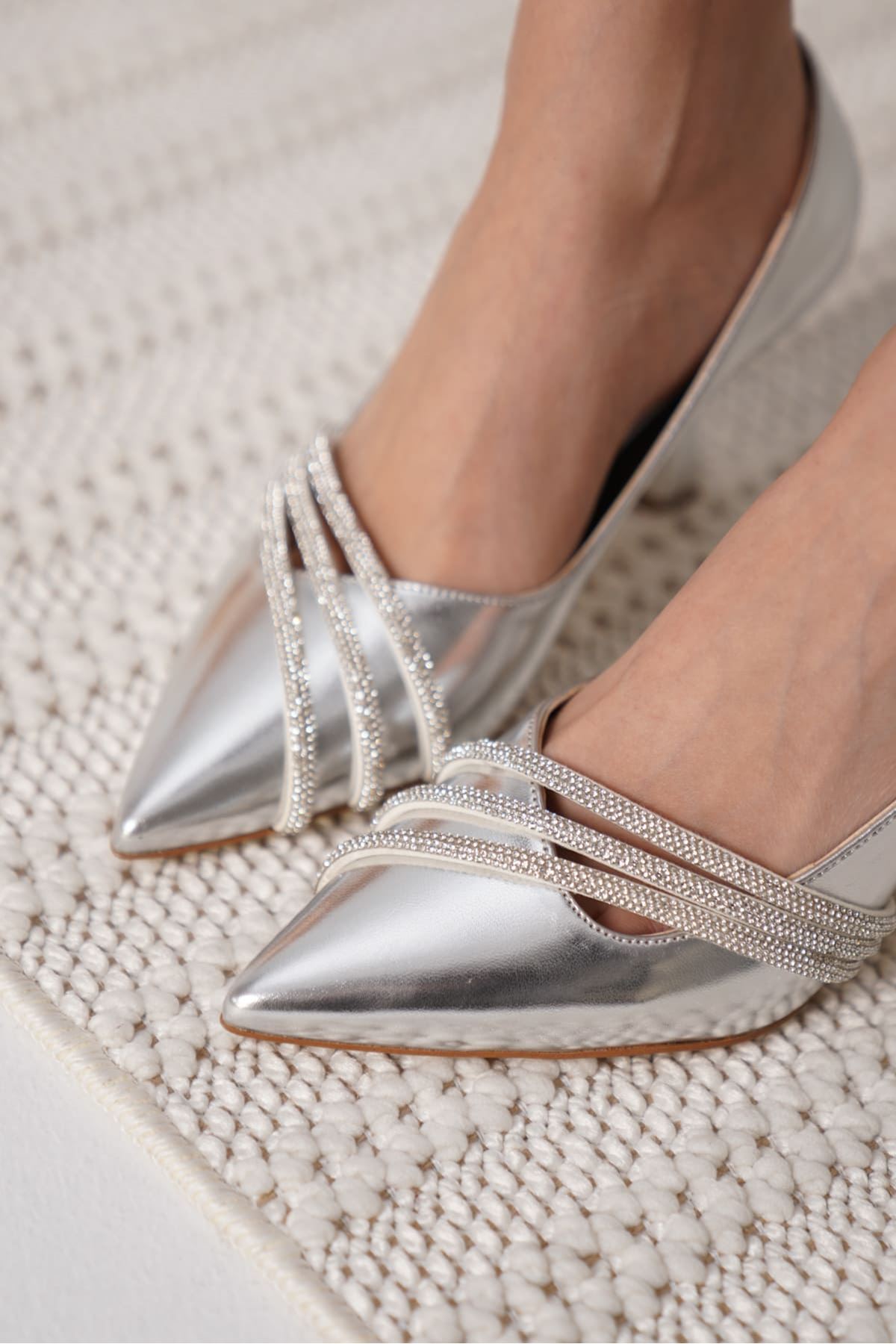 Alvina Gümüş Ayna Taşlı Kadın Topuklu Terlik