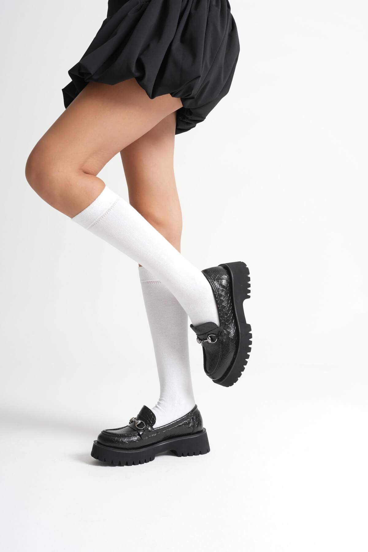 Noir Kadın Günlük Siyah Kroko Loafer Ayakkabı