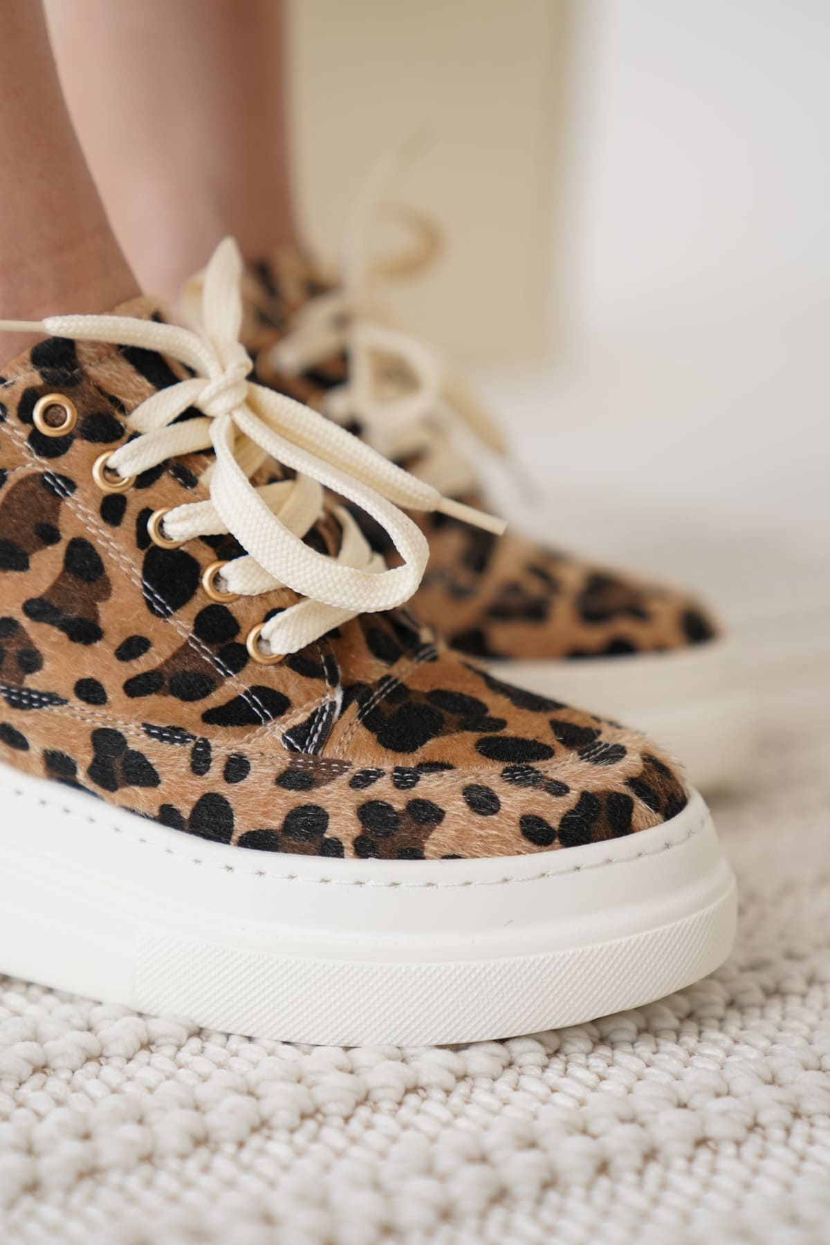Lauren Kadın Gizli Topuk Beyaz Taban Leopar Spor Ayakkabı