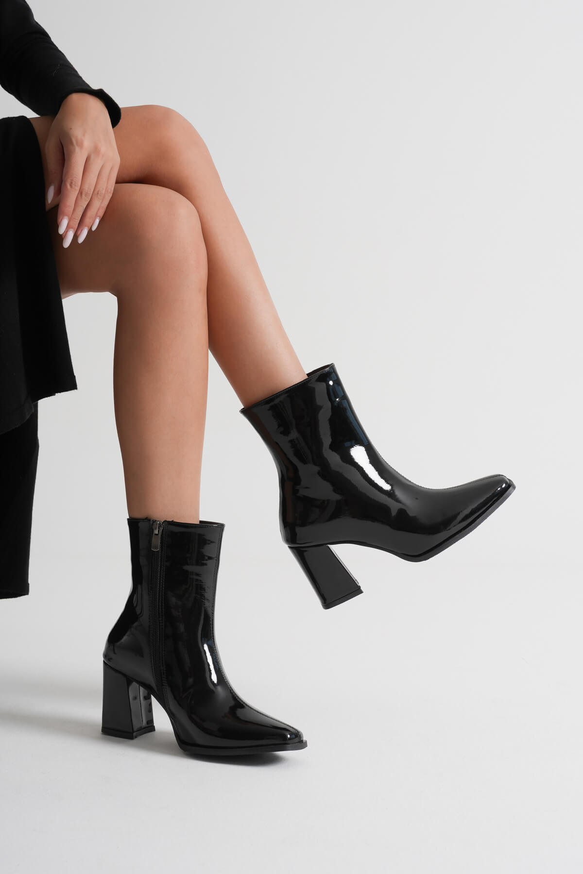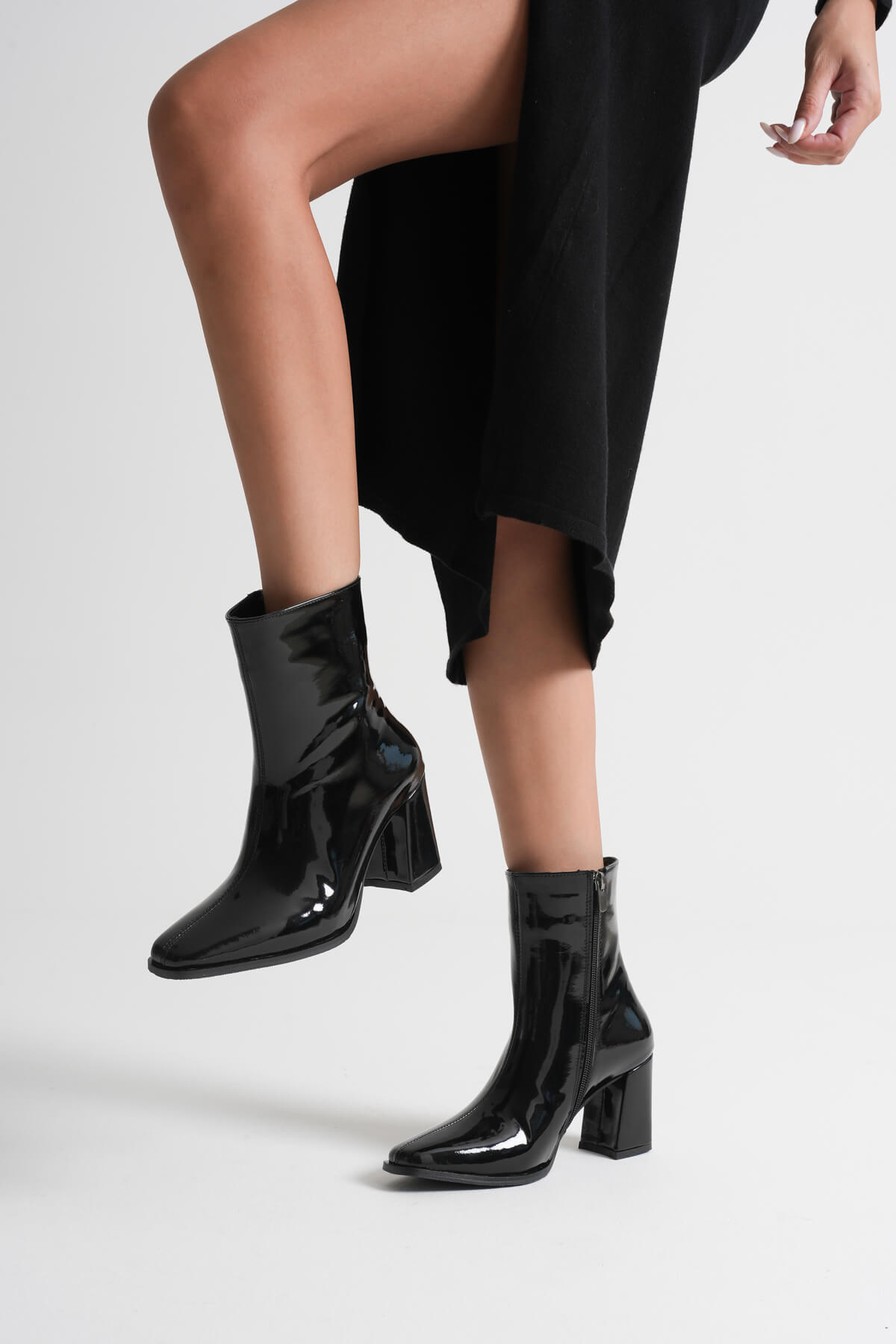 Muso Kadın Siyah Rugan Topuklu Bot
