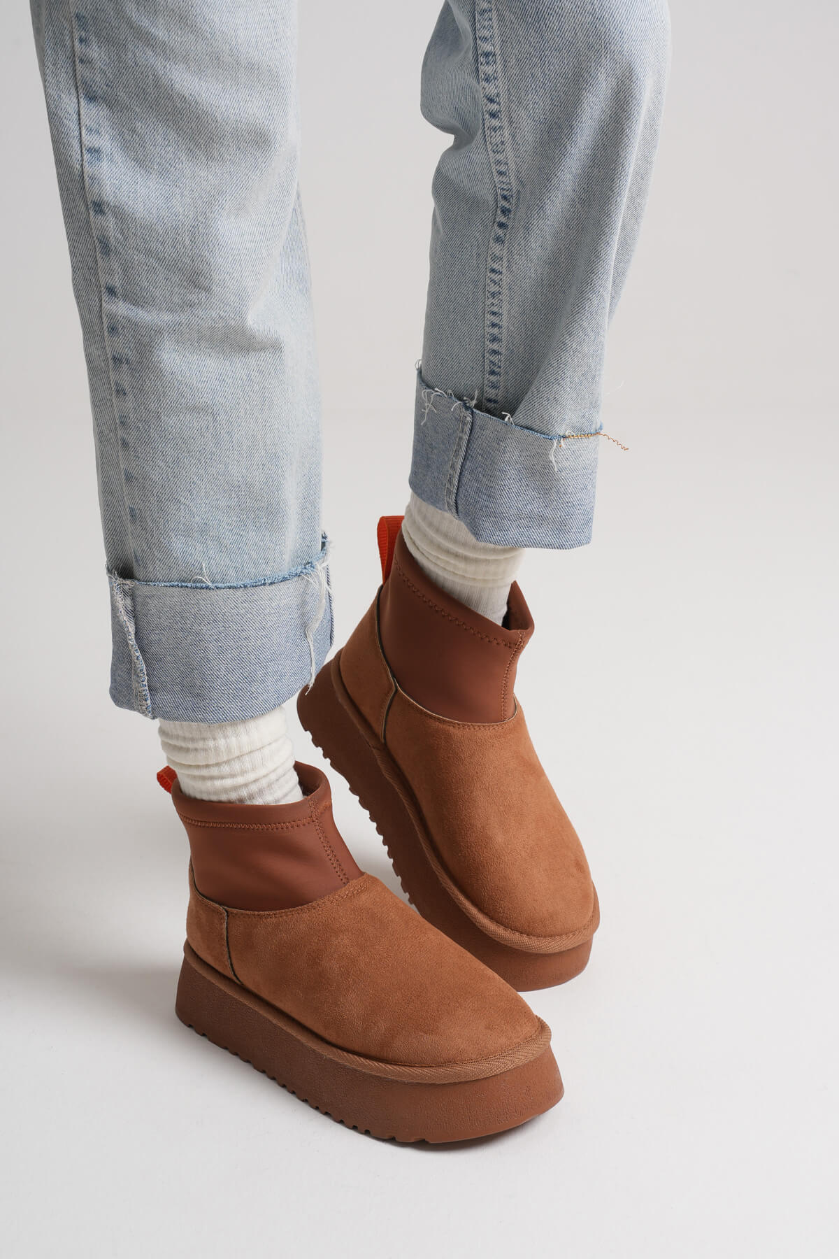 Karma Özel Tasarım Kışlık Acı Kahve Kalın Tabanlı Kadın Bot