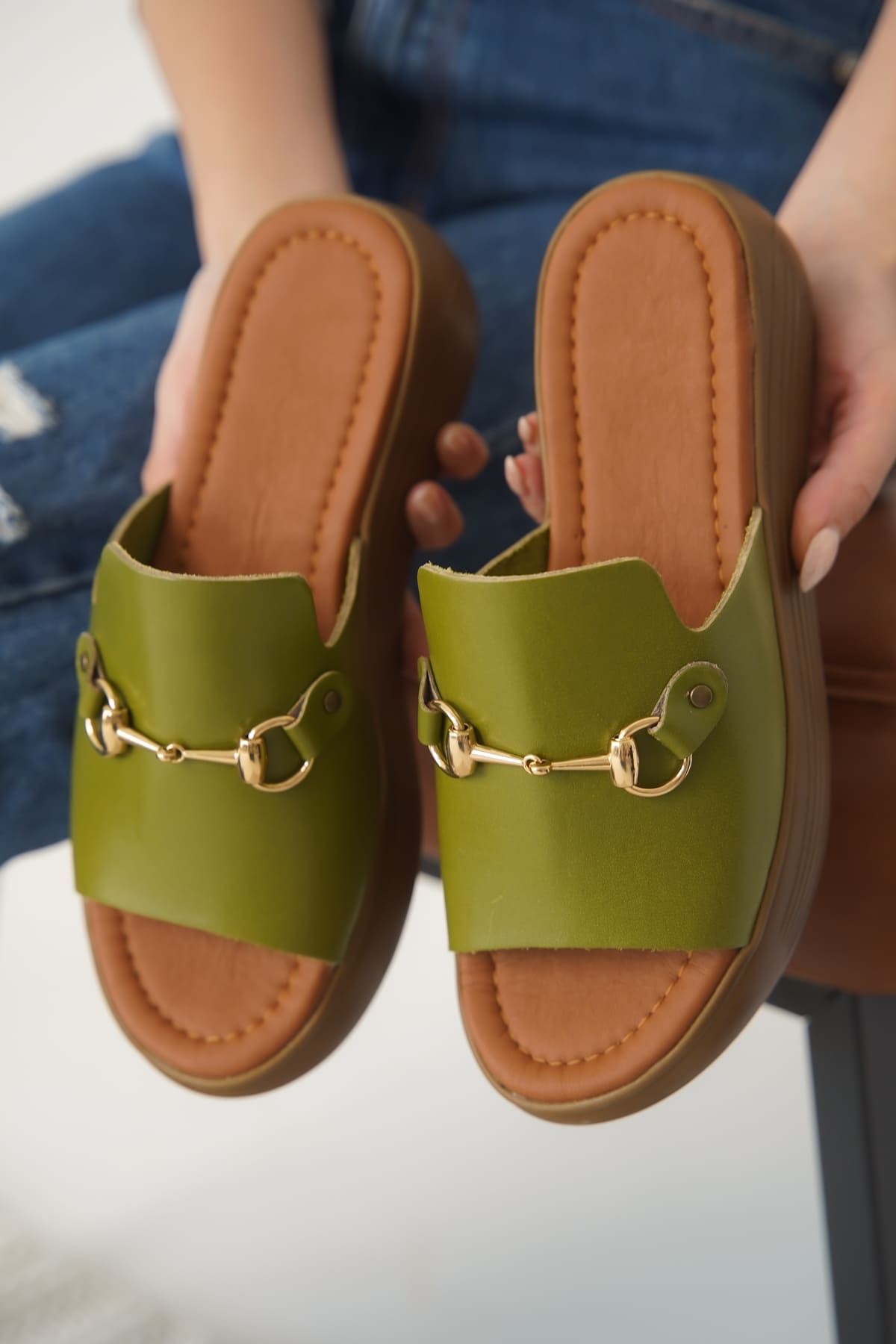 Nelly Haki Yeşili Hakiki Deri Terlik
