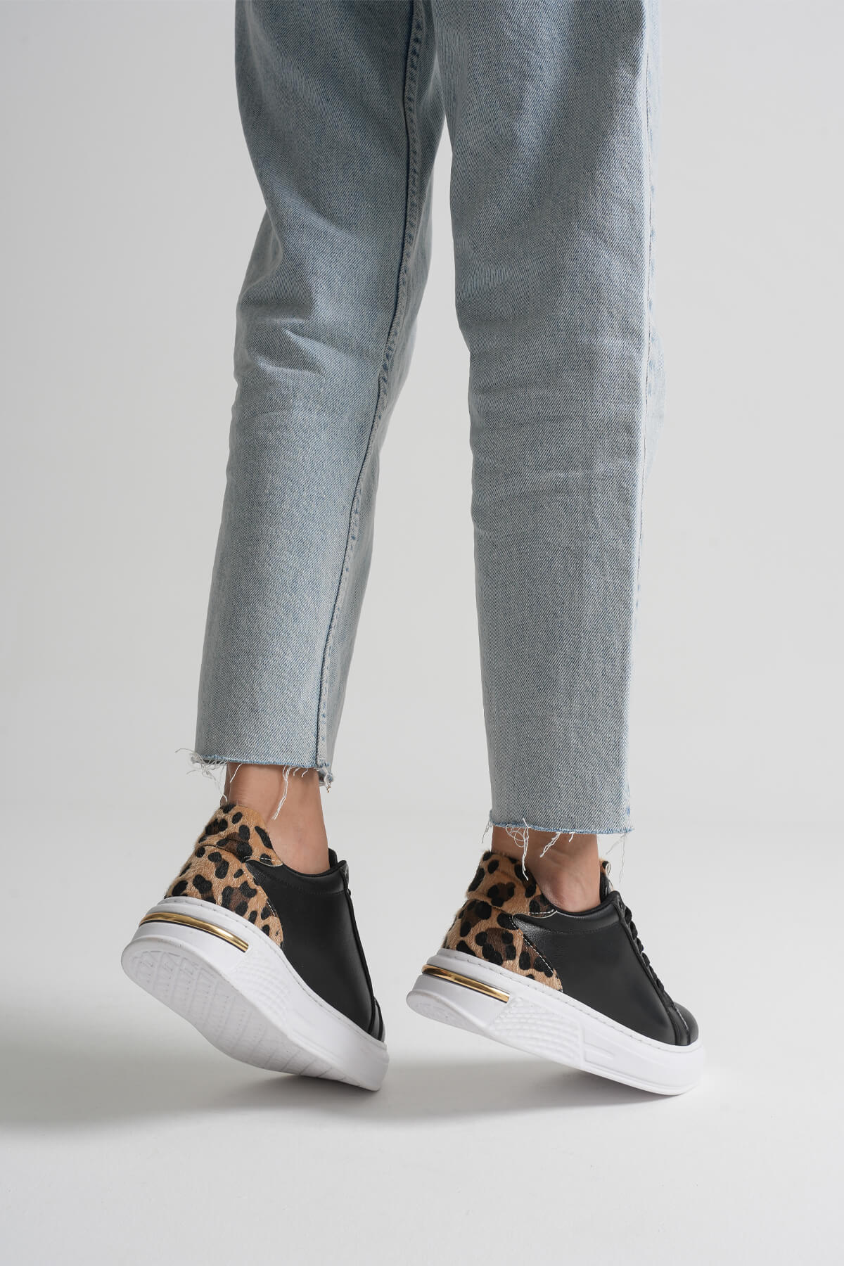 Lauren Kadın Gizli Topuk Beyaz Taban Leopar Spor Ayakkabı
